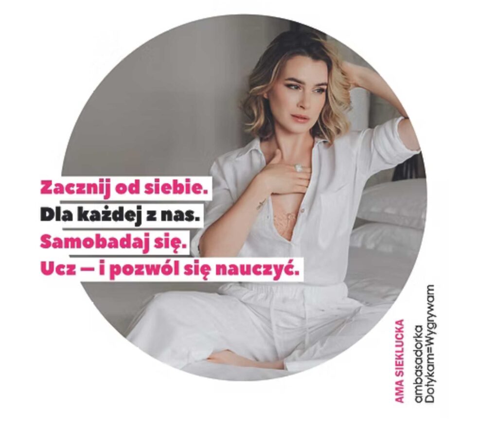 Fundacja Wsparcie na Starcie, EDUKUJĄCA dziewczęta na temat dbania o ZDROWE PIERSI od najwcześniejszych lat poprzez wyrobienie zdrowych nawyków na całe życie. Swoją misję na co dzień realizuje poprzez organizację biustopozytywnych spotkań edukacyjnych w szkołach w całej Polsce. Zajęcia bazują na: promowaniu zdrowych nawyków, biustopozytywności i zdrowej percepcji ciała, zachęceniu do regularnego samobadania piersi jako najbardziej skutecznej metody wczesnego wykrywania raka piersi, na jakie objawy raka piersi należy zwrócić uwagę, wyjaśnieniu, na czym polega brafitting i jak wpływa na zdrowie i poczucie pewności siebie. Głównym zadaniem materiałów będzie promowanie profilaktyki raka piersi poprzez naukę samobadania, zapobieganie symptomom niewłaściwie dopasowanego biustonosza oraz budowanie biustopozytywnego podejścia do piersi. Fundacja od lat prowadzi akcję DOTYKAM = WYGRYWAM objętą patronatem Naczelnej Izby Pielęgniarek i Położnych – instytucji, która na co dzień stoi na straży zdrowia kobiet. Kampania społeczna o międzypokoleniowej trosce o zdrowie piersi to nauka przykładem: matki dla córki, cioci dla siostrzenicy, przyjaciółki dla przyjaciółki. Bo troska zaczyna się od dotyku – i potrafi uratować życie. Twoje zdrowie to nie tylko Twoja sprawa. To także historia, którą piszesz razem z nią – Twoją córką. Twoją mamą. Twoją siostrzenicą. Twoją przyszłą sobą. Bądźmy BIUSTOPOZYTYWNE. Zacznijmy od siebie. | ![]() |
